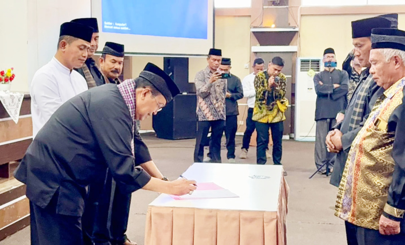Arosuka (Minangsatu) - Ketua Lembaga Kerapatan Adat Alam Minangkabau (LKAAM) Kabupaten Solok Gusmal Dt Rajo Lelo mengukuhkan 14 Ketua LKAAM se Kabupaten Solok masa bhakti 2025-2030 di Ruang Pertemuan Solinda Arosuka, Jumat (03/10/25) yang ditandai dengan penandatanganan berita acara pengukuhan.