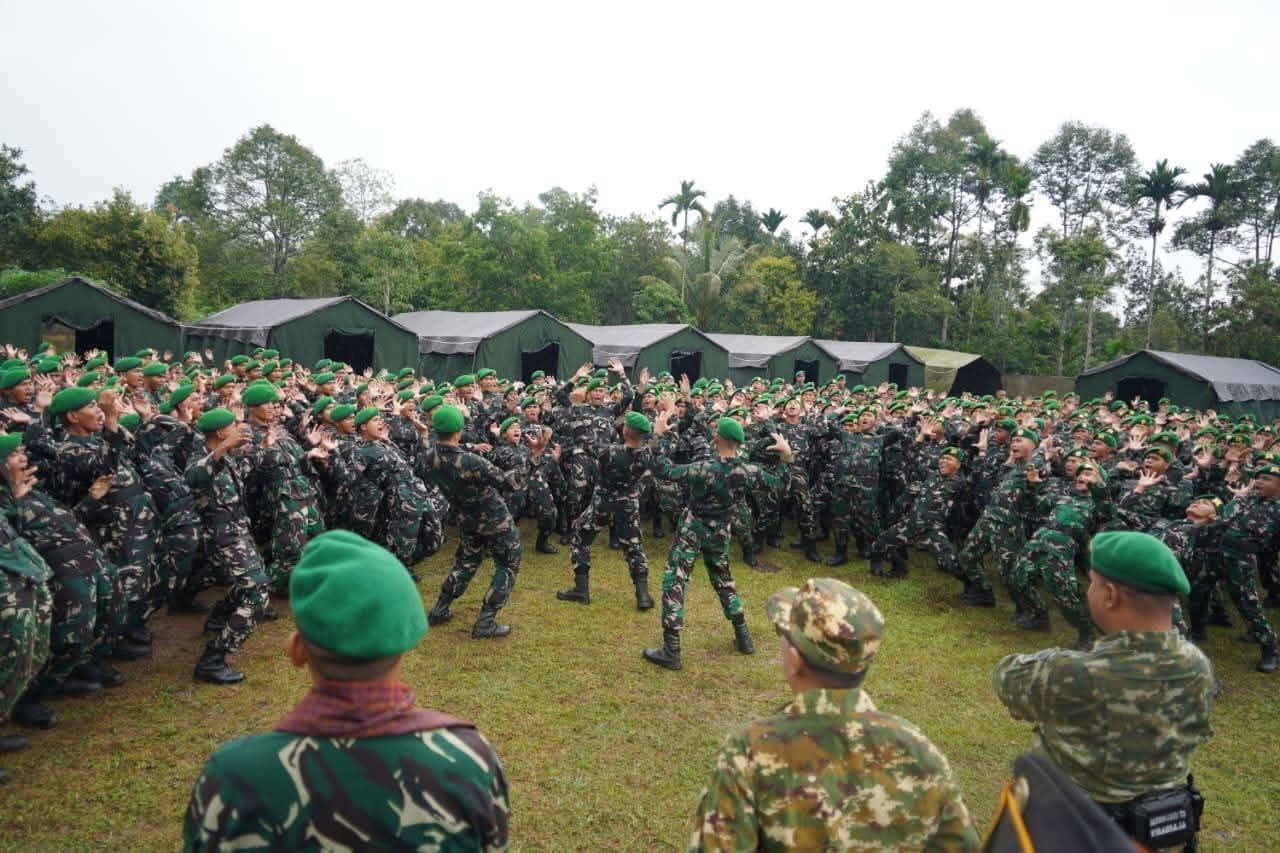 542 Prajurit Yonif TP 951/Pandeka Marapi Disambut Upacara Di Simawang