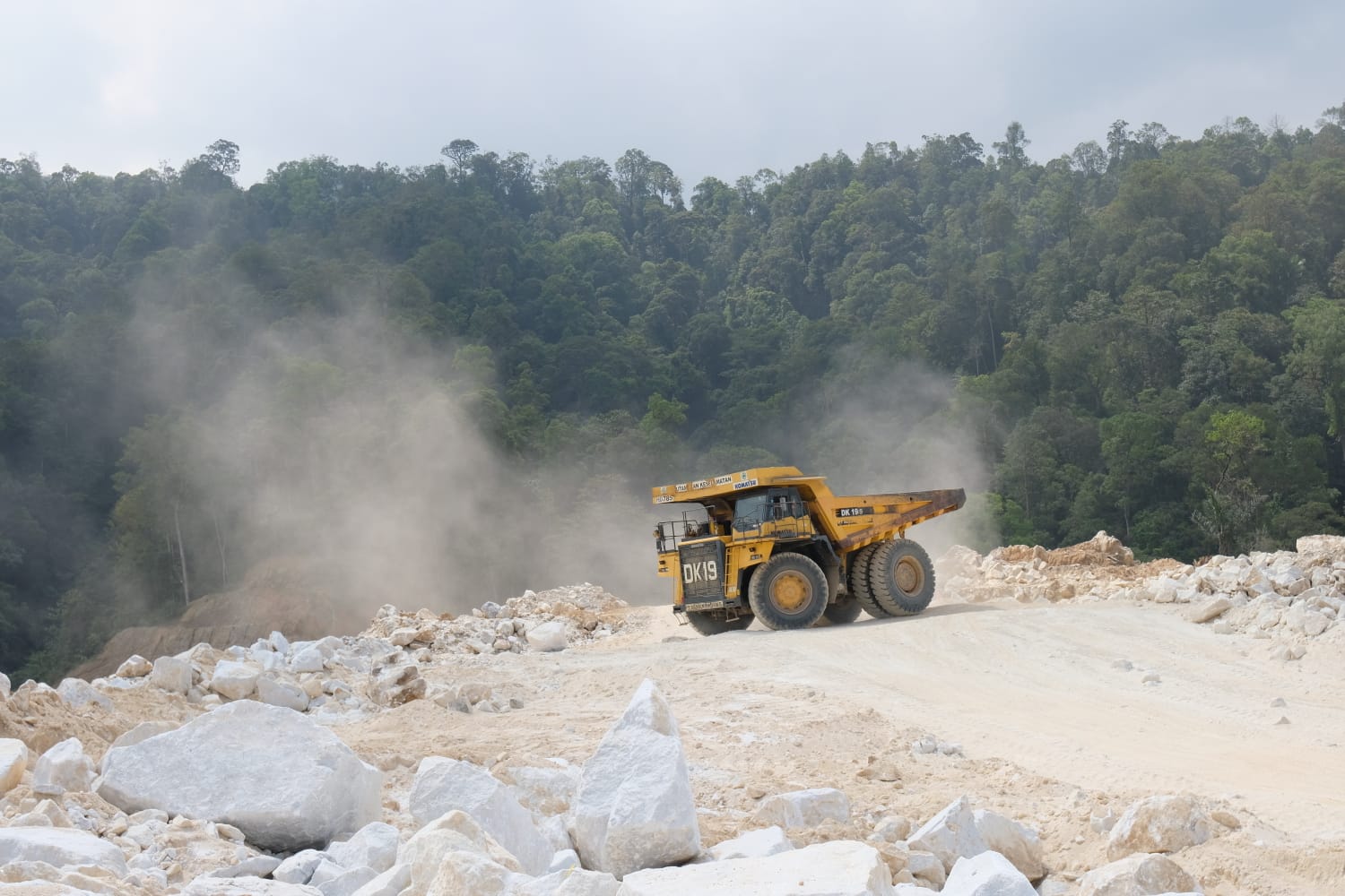 AKTIVITAS TAMBANG- Bukit Karang Putih, sumber kekuatan semen. Batu kapur yang ditambang secara terencana ini menjadi bahan baku utama produksi semen PT Semen Padang, mengawali perjalanan panjang dari alam menuju konstruksi kokoh di seluruh negeri.