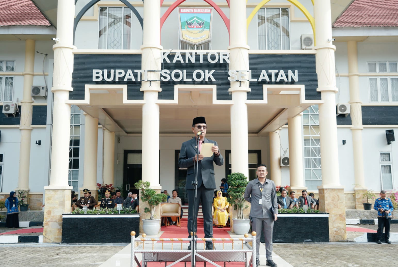 Solok Selatan (Minangsatu) - Pemerintah Kabupaten Solok Selatan menggelar upacara peringatan Hari Sumpah Pemuda ke-97 Tahun 2025 di Halaman Kantor Bupati, Selasa (28/10/2025). Upacara berlangsung khidmat dengan Bupati H. Khairunas bertindak sebagai Inspektur Upacara.