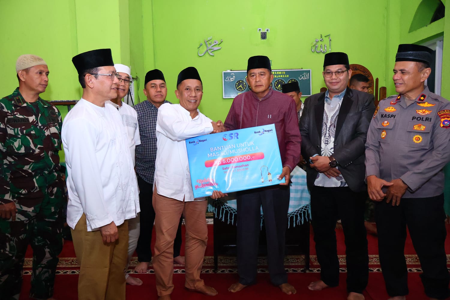 Payakumbuh (Minangsatu) - Wali Kota Payakumbuh, Zulmaeta menyerahkan bantuan sebesar Rp35 juta untuk pembangunan Masjid Baiturrahman, Kelurahan Ompang Tanah Sirah, Kecamatan Payakumbuh Utara, saat kunjungan Tim I Safari Ramadan, Senin (23/02/2026).