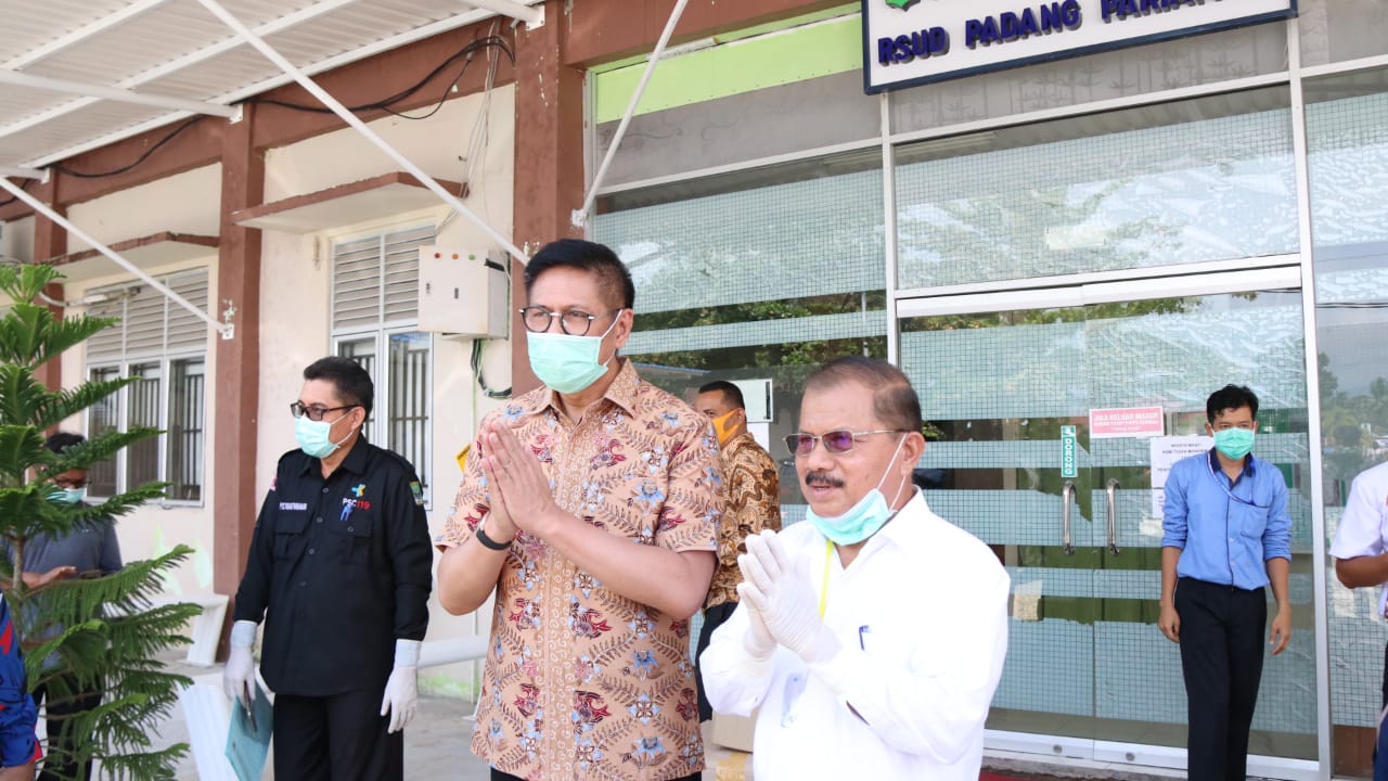 Pariaman ( minangsatu ) - Bupati Padang Pariaman Ali Mukhni, menerima secara simbolis bantuan Alat Perlindungan Diri (APD) dari Anggota DPR RI Ir. H. Mulyadi. Bantuan yang sangat dibutuhkan RSUD Padang Pariaman ini diantar langsung oleh Mulyadi ke kantor Bupati Padang Pariaman, Rabu (22/4) siang.
