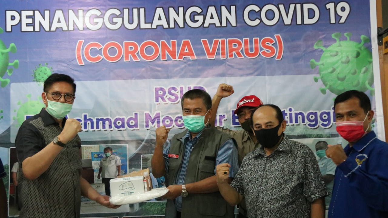 Bantuan yang sangat diharapkan ini berupa 300 pcs Alat Pelindung Diri (APD) berupa baju hazmat, 2.000 pcs masker bedah, 500 botol hand sanitizer dan kacamata medis sebanyak 150 buah. Seluruh bantuan tersebut langsung ada barangnya dan dimasukkan ke gudang RS Ahmad Muchtar.