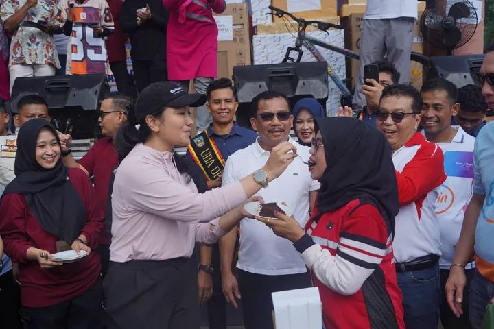 Suasana mendadak berubah sesak. Ribuan peserta memberikan kejutan kepada Bupati Annisa Suci Ramadhani, SH, LL. M. Di hari ulang tahun ke-36. Ketika ramainya aktivitas masyarakat, mulai dari senam massal, jalan santai, hingga bazaar UMKM.