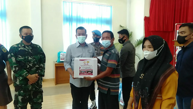 Painan (Minangsatu) - Bupati Pesisir Selatan, Rusma Yul Anwar, menghadiri vaksinasi massal yang diselenggarakan Polres Pesisir Selatan, di Tempat Pelelangan Ikan (TPI) Carocok Tarusan, Sabtu (2/10).
