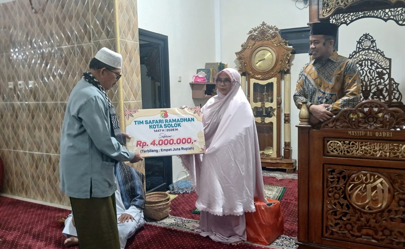 Kota Solok, (Minangsatu) - Tim XV Safari Ramadhan (TSR) Pemerintah Kota Solok malam kedua mengunjungi Masjid Al Qadri Kelurahan VI Suku Kecamatan Lubuk Sikarah Kota Solok, Minggu, (22/02/26) malam dan menyerahkan bantuan Pemerintah unruk Masjid sebesar Rp 4 juta.