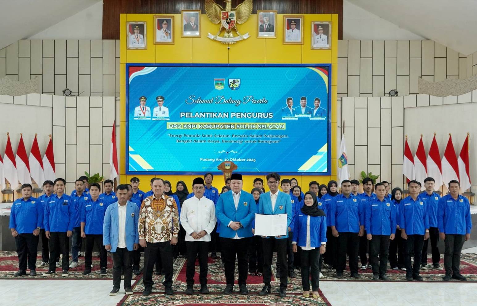 Solok Selatan (Minangsatu) - Semangat kolaborasi antara pemerintah daerah dan generasi muda semakin ditegaskan. Hal ini disampaikan langsung oleh Bupati Solok Selatan, H. Khairunas, saat menghadiri pelantikan Dewan Pengurus Daerah (DPD) Komite Nasional Pemuda Indonesia (KNPI) Kabupaten Solok Selatan periode 2023–2025, yang digelar di Aula Kantor Bupati Solok Selatan, Jumat (10/10/2025).