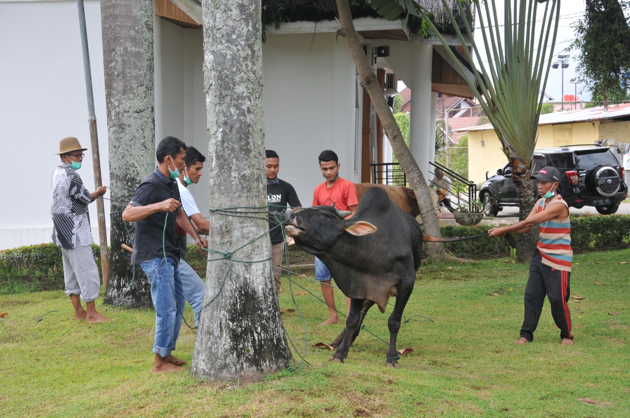 "Berkurban merupakan ibadah mengikuti perintah Allah sebagaimana dicontohkan dalam kisah nabi Ibrahim bersama nabi Ismail. Ada ketulusikhlasan yang memperlihat ketaqwaan untuk saling berbagi terhadap sesama," kata Gubernur Irwan Prayitno disela-sela pelaksanaan kurban di halaman guberburan, Jum'at (31/7/2020)