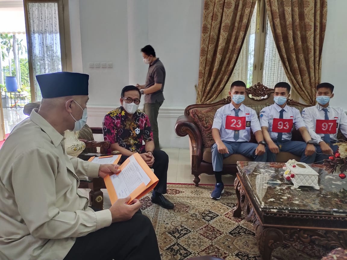 Padang (Minangsatu) - Sebanyak 6 (enam) peserta dari Sekolah Menengah Atas (SMA) atau sederajat se Sumatera Barat, terpilih sebagai utusan Sumbar untuk menjadi calon Pasukan Pengibar Bendera Pusaka (Paskibraka) untuk Upacara Hari Kemerdekaan, 17 Agustus 2021 di Istana Merdeka. Mereka diterima Gubernur Sumbar, Mahyeldi, di Istana Gubernuran, Sabtu (8/5/2021). Hadir dalam pertemuan itu, Kepala Dinas Pemuda dan Olahraga Provinsi Sumbar Drs. Bustavidia, MM, dan empat pelatih yaitu Kapten Laut (KH) Fendra Marta, E. S.Pd, Hendri, S. Sos, Lithos dan Herlina.