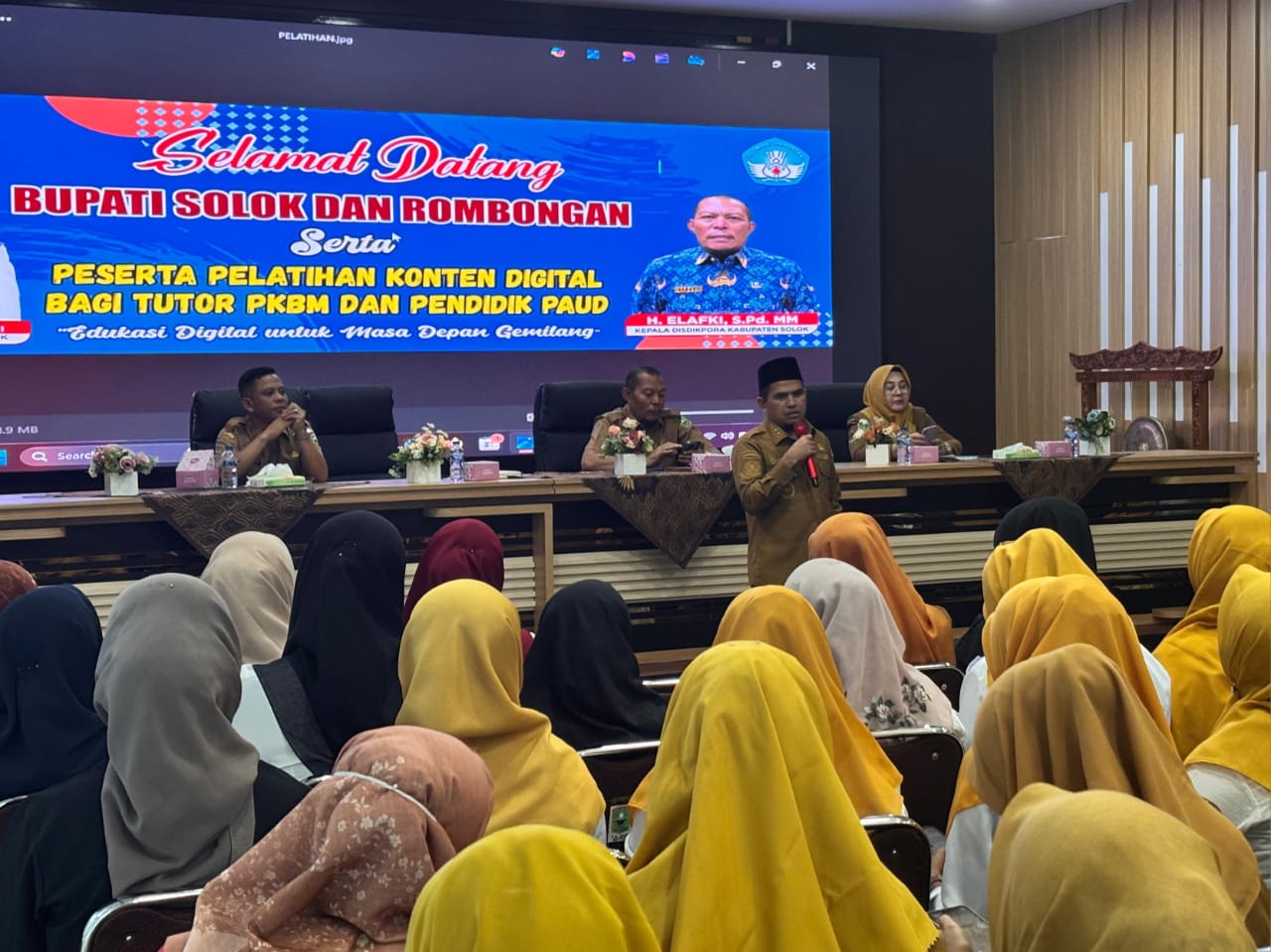 Arosuka (Minangsatu) - Dinas Pendidikan Pemuda dan Olahraga Kabupaten Solok menggelar Pelatihan Pembuatan Konten Digital bagi Guru PAUD dan Pengelola PKBM se Kabupaten Solok.