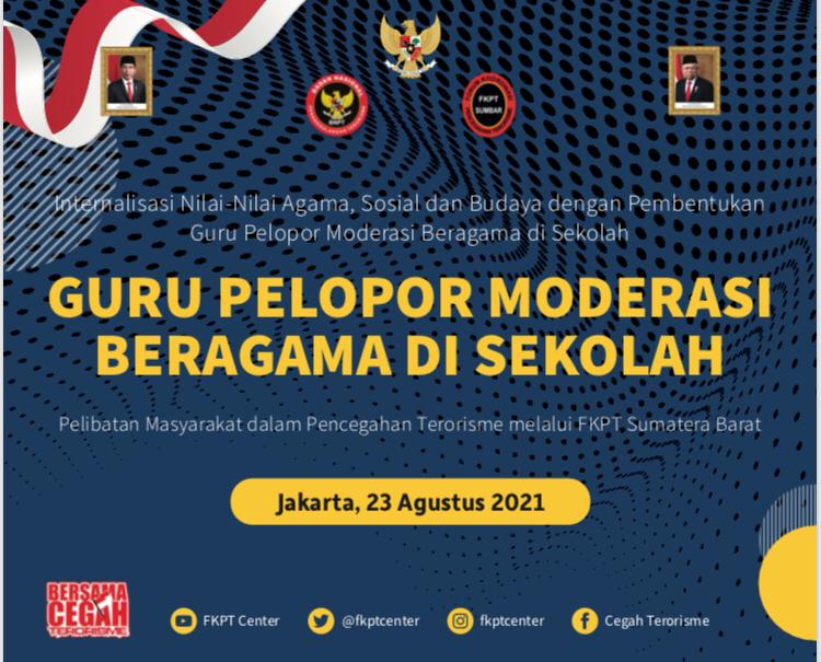 Padang (Minangsatu) - Untuk mencegah secara dini paham radikal (radikalisme) maka FKPT Sumatera Barat menggelar Webinar yang bertajuk ‘Guru Pelopor Moderasi Beragama di Sekolah’ diikuti oleh lebih dari 200 peserta terdiri dari para guru agama dan guru umum serta para pengasuh pondok pesantren, pagi hingga siang ini (Senin, 23/8).