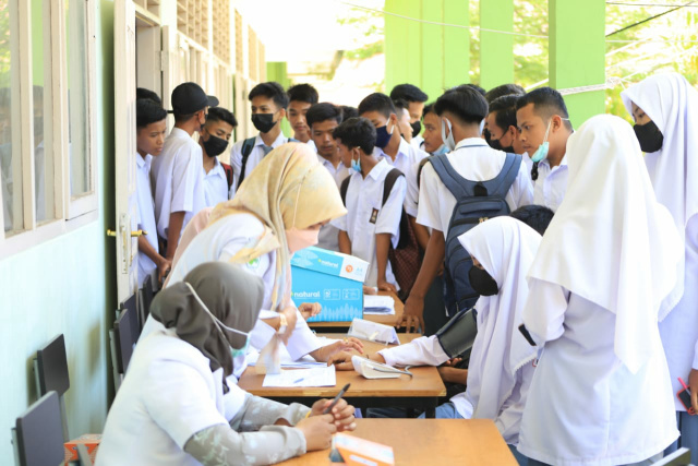 Kepada pelajar bupati berpesan jangan percaya dengan hoaks yang mengekpos dampak negatif vaksin.