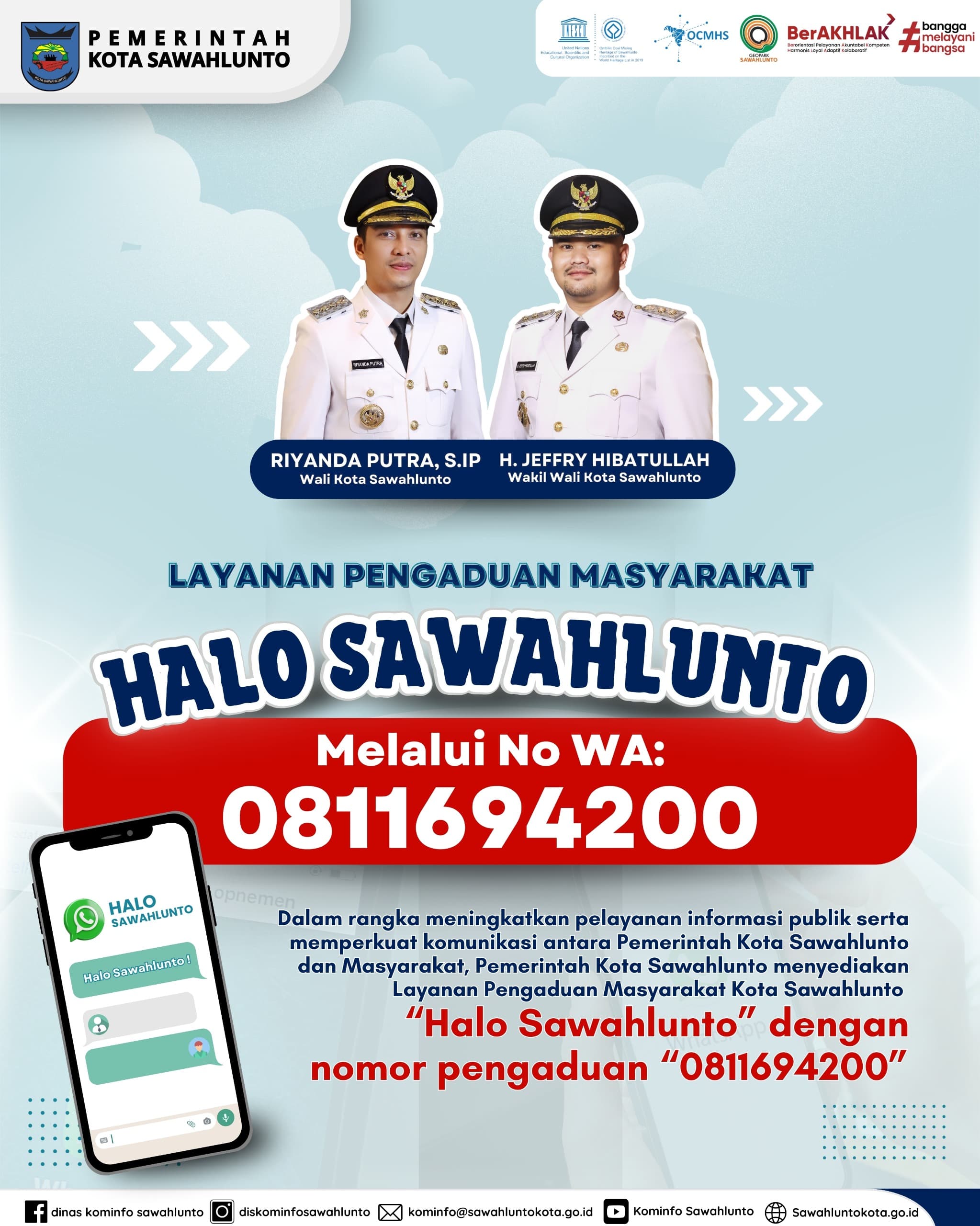 Sawahlunto (Minangsatu) Pemerintah Kota Sawahlunto resmi meluncurkan Halo Sawahlunto, sebuah layanan pengaduan digital berbasis WhatsApp. Program ini menjadi inovasi Pemko untuk membuka akses komunikasi yang lebih cepat, mudah, dan transparan antara pemerintah dan masyarakat.