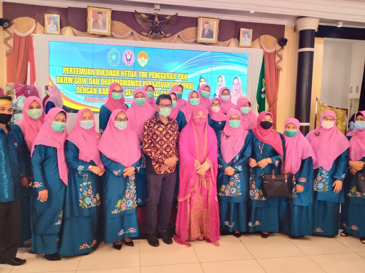 Padang (Minangsatu) - Pengurus Tim Penggerak PKK provinsi Sumatera Barat melaksanakan pertemuan rutin setiap bulannya bertempat di Auditorium Gubernuran, Jum'at (22/1/2021). Pertemuan ini dihadiri oleh seluruh pengurus dan anggota TP PKK, Dekranasda dan Bundo Kanduang Sumbar, Ibu-ibu Ketua TP-PKK se Sumbar, Ibu-ibu Ketua GOW se Sumbar.