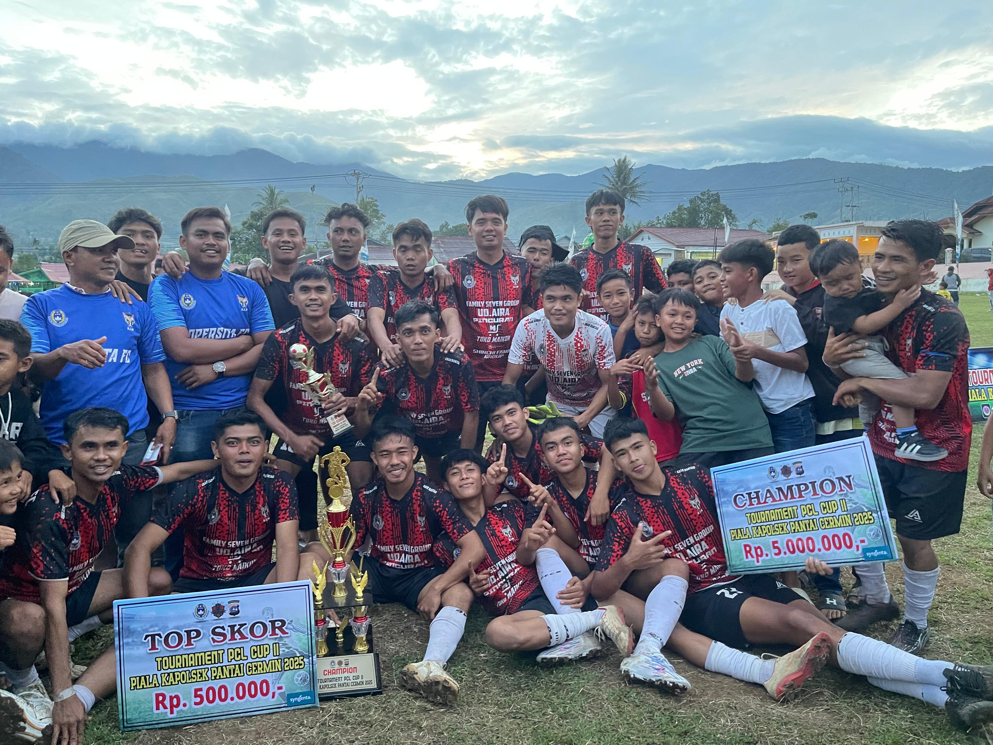 Surian (Minangsatu) - Klub asal Nagari Sitapus Kecamatan Sangir Batang Hari Kabupaten Solok Selatan sukses menjadi kampiun pada gelaran PCL II Piala Kapolsek Pantai Cermin Kabupaten Solok tahun 2025.
