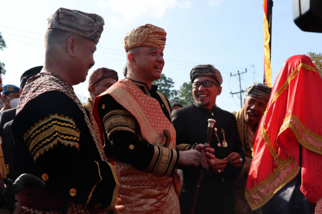 Tanah Datar (Minangsatu) - Kepala Kepolisian Daerah Sumatera Barat (Kapolda Sumbar) Irjen Pol Teddy Minahasa P, SH. S.Ik. MH beserta istri Ny. Merthy Teddy Minahasa menerima gelar kehormatan adat dari Tampuak Tangkai Alam Minangkabau.