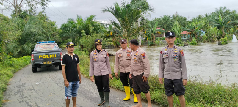 PASAMAN BARAT (Minangsatu) - Jajaran Polres Pasaman Barat melalui Polisi Sektor Pasaman tinjau korban banjir di Jorong Rantau Panjang, Nagari Sasak, Kecamatan Sasak Ranah Pasisie, Kabupaten Pasaman Barat, Minggu (04/12).