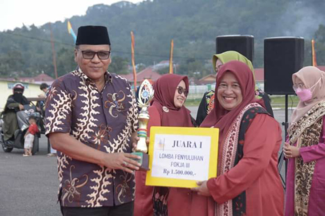 Sementara Ketua TP-PKK Kota, dr. Dian Puspita Fadly Amran, Sp.JP menambahkan, pertama saya ucapkan selamat kepada para pemenang, khususnya Kelurahan Pasar Usang yang telah dua kali berturut-turut keluar sebagai juara umum.