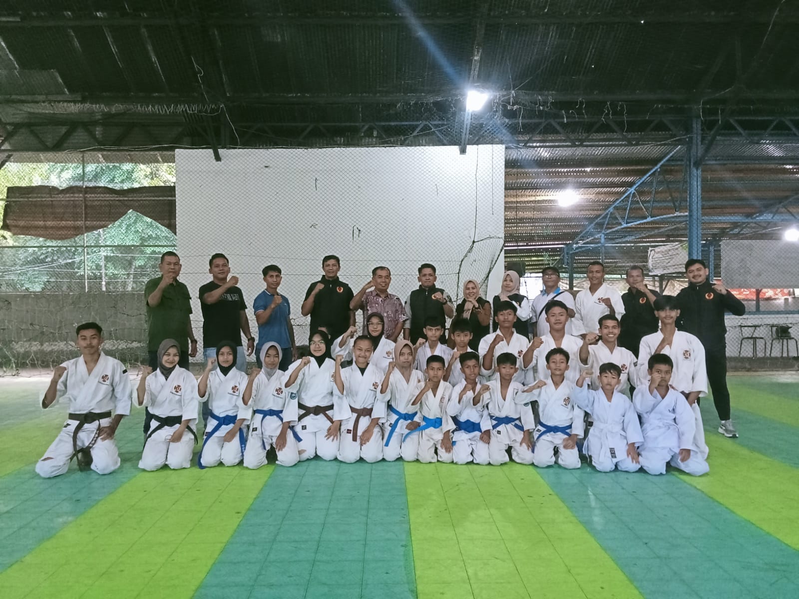 Kedatangan rombongan tim monev yang dipimpin Wakil Ketua KONI Sawahlunto Boy Purbadi didampingi Sekretaris KONI Sawahlunto Hendri Febri Yudi disambut langsung oleh pelatih kempo Almadi dan Ari Parmanto bersama para atlet yang sedang menjalani latihan.