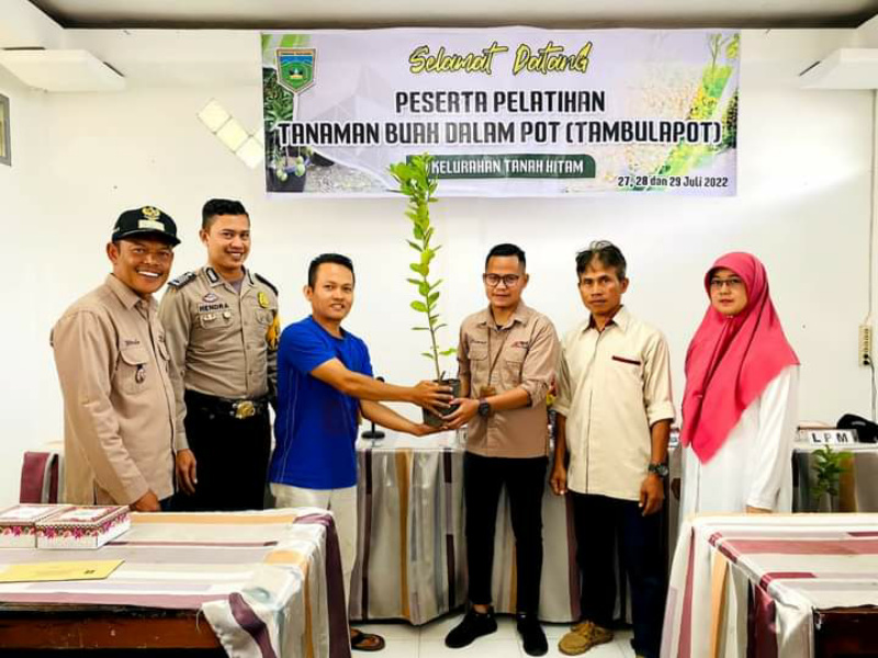 Pd. Panjang (Minangsatu) - Sebanyak 39 orang warga Kelurahan Tanah Hitam, Kecamatan Padang Panjang Barat, Rabu (27/7/2022) siang, ikuti kegiatan pelatihan Tanaman Buah Dalam Pot (Tambulapot) dengan nara sumber dari Dispangtan, bertempat di aula Kantor Lurah setempat.