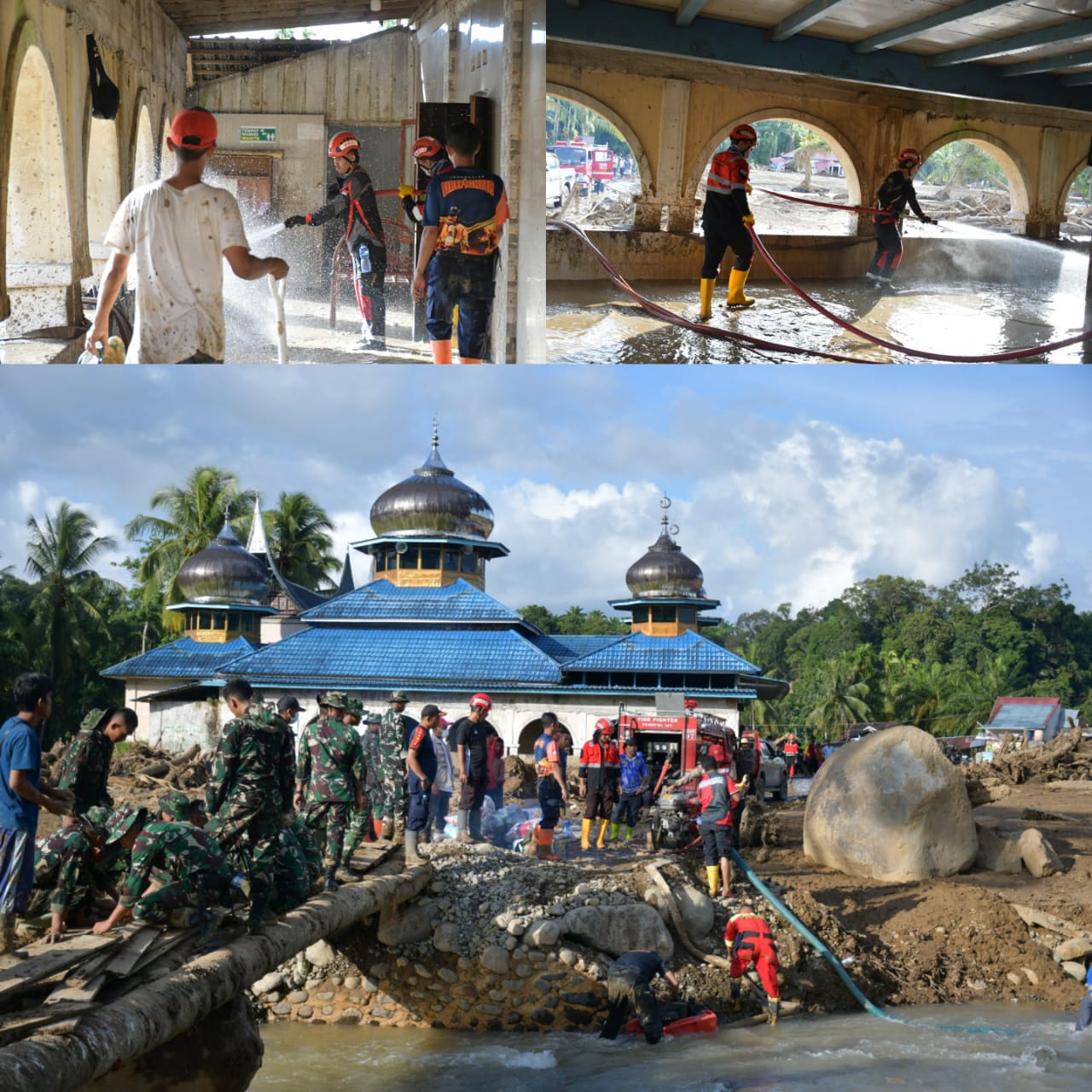 “Mengingat waktu terbatas, pembersihan masjid kita dahulukan. Tim bekerja bersama Damkar Agam dan relawan lainnya. Semoga hari ini selesai sehingga warga bisa kembali beribadah,” kata Hendra.