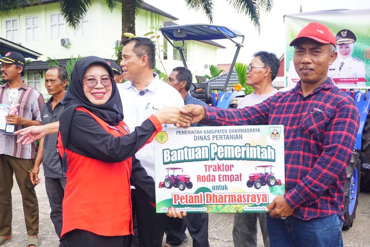 Wakil Bupati Dharmasraya Leliarni dalam sambutannya menyampaikan bahwa, penyerahan bantuan pertanian merupakan kolaborasi nyata, antara pemerintah pusat, dengan pemerintah daerah. Terutama lembaga legislatif, hingga petani. Tujuannya adlah untuk memperkuat pembangunan sektor pertanian.