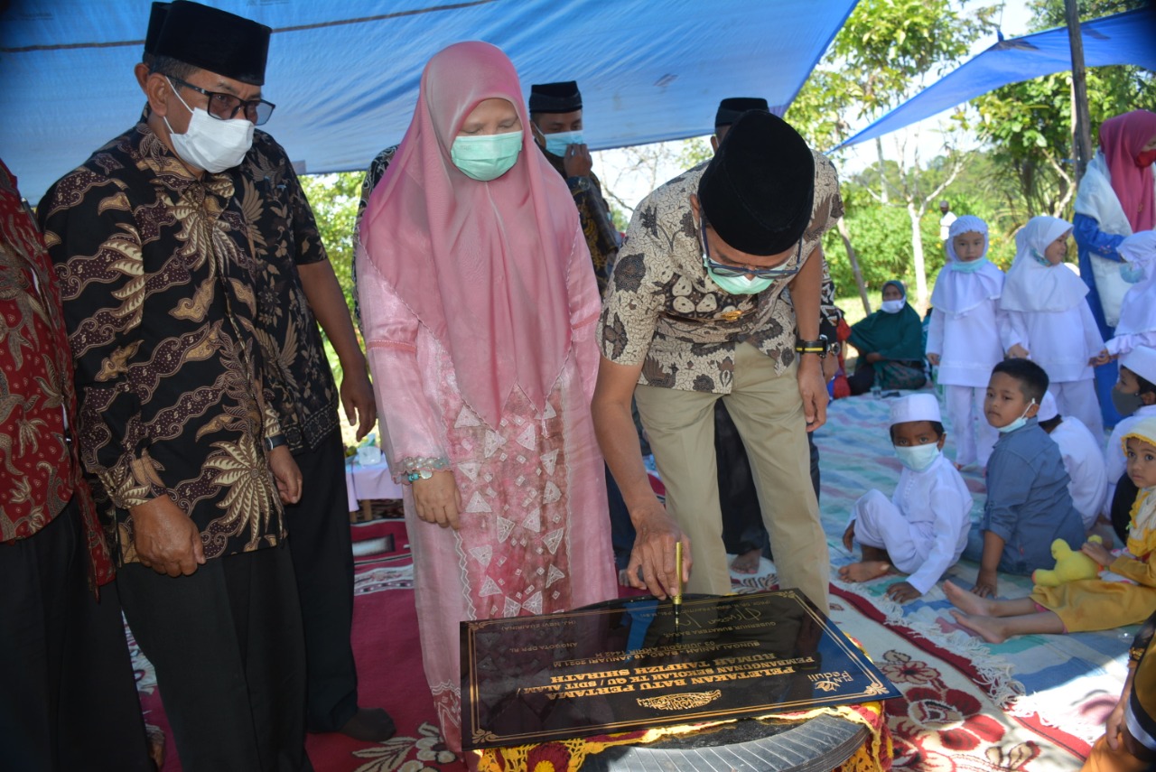 Gubernur Sumatera Barat (Sumbar) Irwan Prayitno hadir bersama istri Nevi Zuairina, anggota Komisi VI DPR RI, untuk meletakan batu pertama sekaligus menandatangani prasasti tanda diresmikannya pembangunan Sekolah TK QU/ SDIT Alam/ Rumah Tahfizh Shirath di Jorong Sungai Janiah, Nagari Tabek Panjang, Agam, Sabtu (16/1/2021). Peresmian itu disaksikan langsung oleh Camat Baso Surya Wendi, Walinagari Salo, Walinagari Koto Baru, Niniak Mamak, Alim Ulama, Cadiak Pandai, toko masyarakat, para dermawan dan pewakaf serta para orang tua murid.