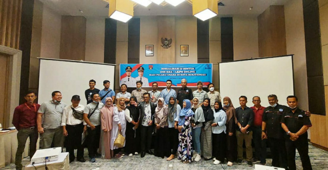 Bukittinggi (Minangsatu) - Sosialisasi Perizinan Berusaha Berbasis Online Single Submission Risk Based Approach (OSS RBA) dan Laporan Kegiatan Penanaman Modal (LKPM) Online, yang diadakan oleh Pemerintah Kota Bukittinggi dari tanggal 4 sampai dengan 7 Oktober 2021 sore tadi berakhir yang ditandai dengan penyerahan Nomor Induk Berusaha (NIB) bagi pelaku usaha bertempat di Hotel Santika Bukittinggi.