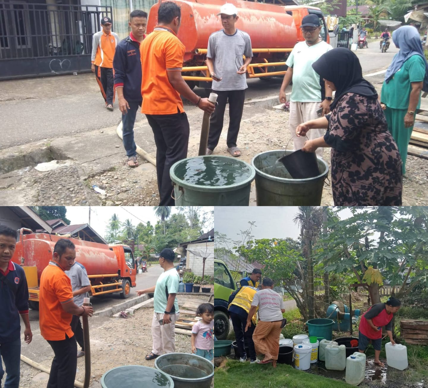 Dharmasraya (Minangsatu) — Pemerintah Kabupaten Dharmasraya bersama Balai Penataan Bangunan, Prasarana dan Kawasan (BPBPK) Sumbar salurkan 16 tangki air bersih kapasitas 4.000 liter/ hari, untuk mengatasi kelangkaan Air bersih, akibat kemarau panjang menimpa warga Kenagarian Empat Koto Pulau Punjung, Kecamatan Pulau Punjung, Kabupaten Dharmasraya.