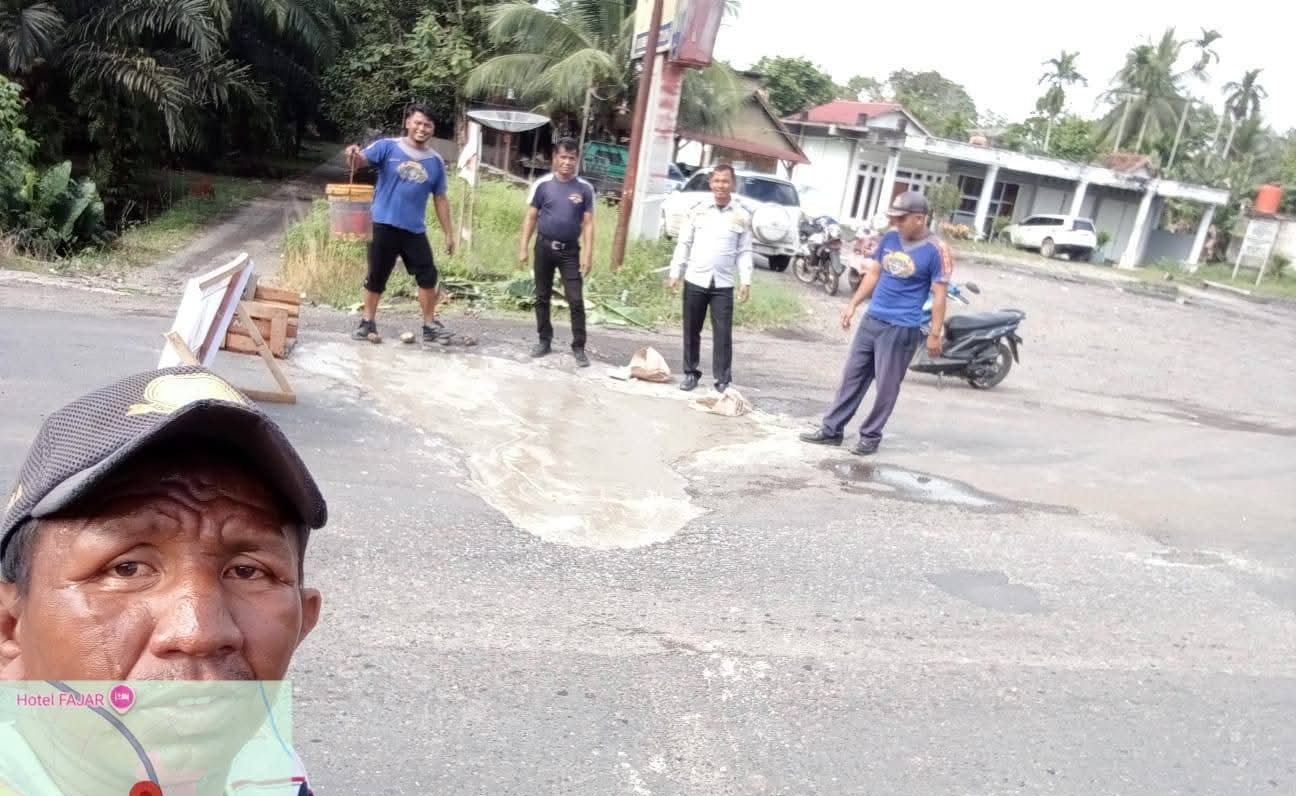 Dharmasraya (Minangsatu) – Pemerintah Kabupaten Dharmasraya, melalui Dinas Perhubungan (Dishub) kerahkan personil menambal lubang menganga, dinilai cukup membahayakan pada titik Jalan Lintas Sumatera (Jalinsum) berada di Palo Padang, Nagari Koto Padang, Kecamatan Koto Baru, Kamis (2/10/2025).