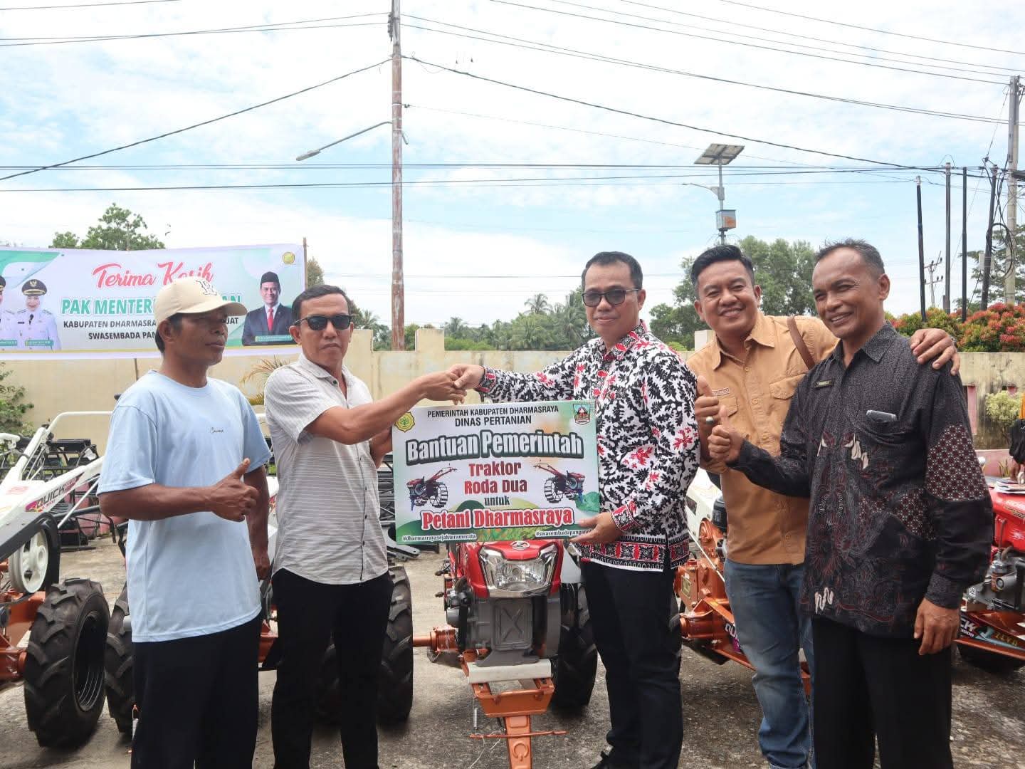 Pemkab Dharmasraya Serahkan 10 Unit Traktor Untuk Kelompok Tani