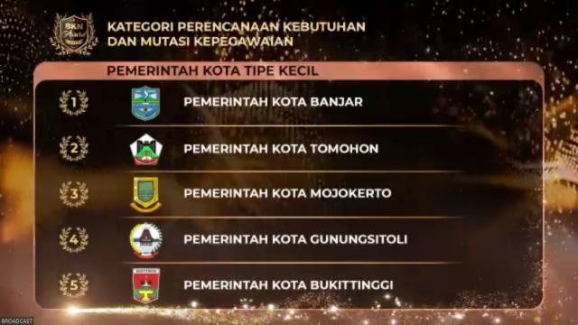 “Alhamdulillaah atas arahan dan bimbingan Wali Kota, maka Kota Bukittinggi mendapat penghargaan dari BKN Pusat untuk 2 kategori. Pertama kita Bukittinggi juara 1 Kategori Special Pilot Project SIASN dan masuk lima besar nasional kategori Perencanaan Kebutuhan dan Mutasi Kepegawaian,” jelas Martias Wanto.