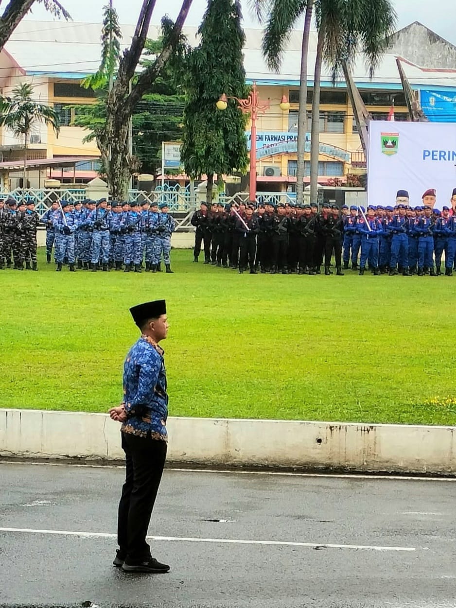 Barisan peserta tampak rapi dan bersemangat, terdiri dari pasukan gabungan TNI AD, AL, AU, personel Polda Sumbar, serta ASN dari Satpol PP, Dinas Kehutanan, dan OPD Pemprov Sumbar. Turut hadir pula mahasiswa dari AMSS, AKPER Kesdam I BB, Poltekpel, serta siswa dari SMK Pelayaran Padang, SMA Praja Nusantara, SMK Taruna, SMAN 1, SMAN 2, dan SMAN 10 Padang.
