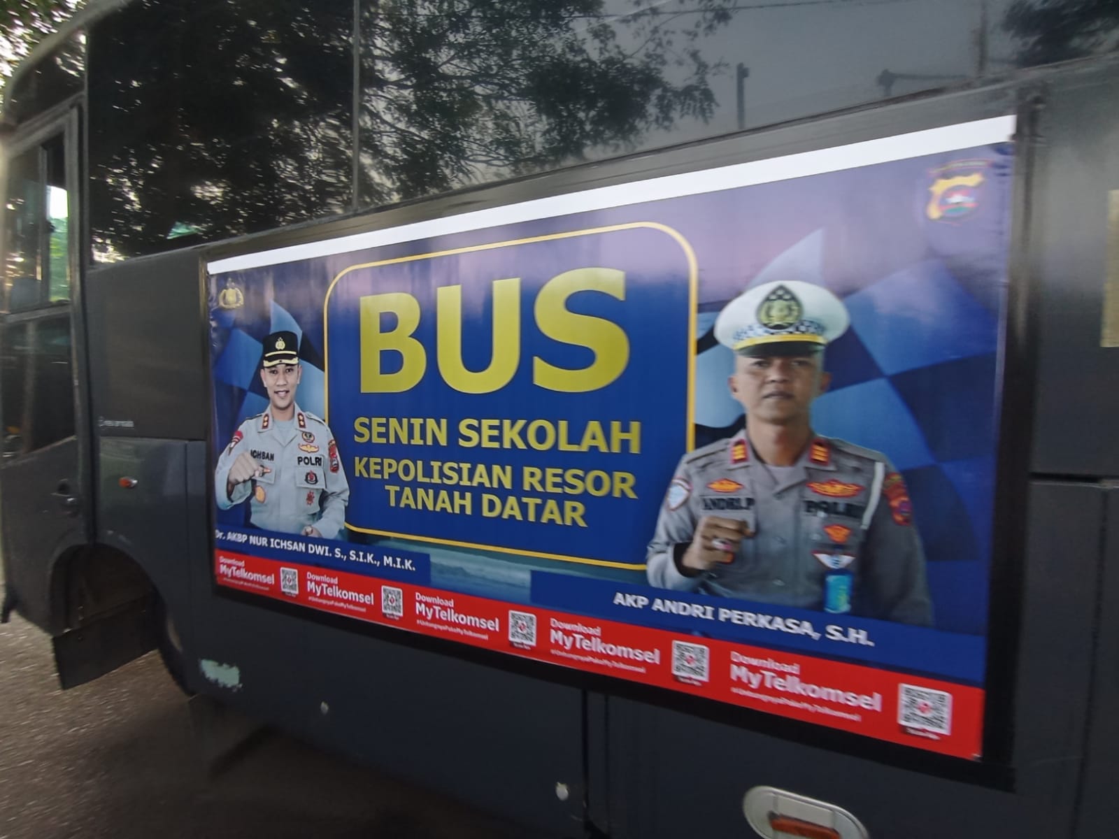Kapolres saat diwawancarai sampaikan, hari ini Senin pertama yang mana Polres Tanah Datar bekerjasama dengan Dinas Perhubungan Tanah Datar laksanakan kegiatan Bus Senin Sekolah, yang diperuntukkan bagi pelajar.