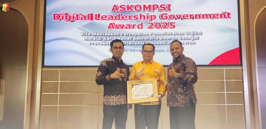 Surabaya (Mibangsatu) – Sekretaris Daerah Kota Solok, Dr.Desmon, M.Pd menorehkan prestasi membanggakan dengan meraih penghargaan nasional sebagai Sekretaris Daerah Berkinerja Digital Terbaik kategori Vision pada ajang ASKOMPSI Digital Leadership Government (ADLG) Awards 2025 yang digelar Asosiasi Diskominfo Provinsi Seluruh Indonesia (ASKOMPSI) di Hotel Grand Mercure Surabaya, Kamis (20/11/25).