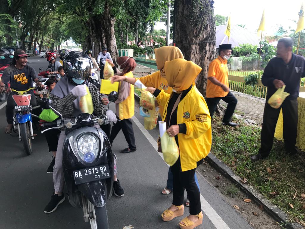 Padang (Minangsatu) -- Selama dua puluh hari berturut-turut, Dewan Pimpinan Daerah (DPD) Partai Golkar Sumatera Barat (Sumbar) bagi-bagi pabukoan (takjil) buat masyarakat di Kota Padang.