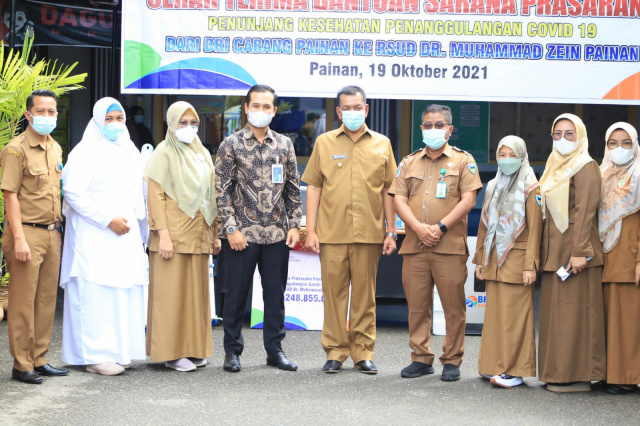 Painan (Minangsatu) - Bank Rakyat Indonesia (BRI) Cabang Painan, Kabupaten Pesisir Selatan menunjukkan kepedulian terhadap upaya penanganan Covid-19 di RSUD Dr Muhammad Zein Painan, dengan memberikan bantuan sarana dan prasarana.
