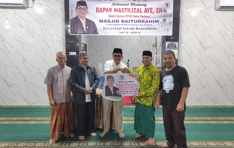 Sementara itu, Wakil Ketua DPRD Kota Padang, Mastilizal Aye, melaksanakan kunjungan serupa di Masjid Baiturrahim, Kampung Lapai, Kecamatan Nanggalo. Sosok yang dikenal merakyat ini membawa bantuan hibah APBD senilai Rp25 juta untuk mendukung operasional masjid. Aye mengapresiasi transformasi luar biasa rumah ibadah tersebut, yang berawal dari wakaf tanah sederhana hingga kini menjadi masjid representatif berkat gotong royong warga.