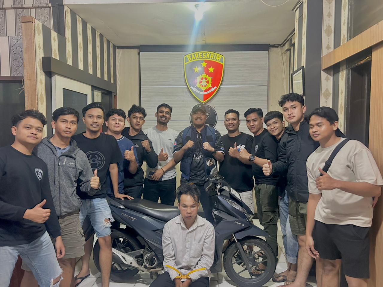 "Dari hasil interogasi awal, petugas berhasil mengamankan sejumlah barang bukti, di antaranya satu unit sepeda motor Honda Beat Deluxe dengan nomor polisi BM 5780 DI, satu buah kunci motor, satu buah helm warna putih, satu baju hitam, satu celana pendek hitam, serta sepasang sandal warna cokelat merek Fashion Sport," Ujar Iptu Ai Am'ar,