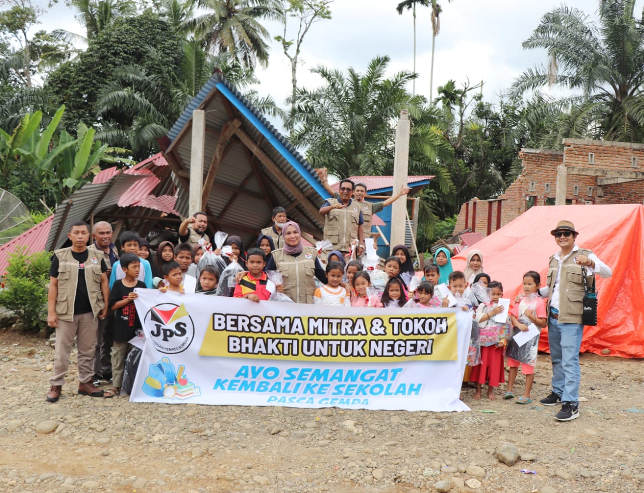Anak-anak tanah bencana di Taruko itu terlihat senang didatangi JPS Bhakti Untuk Negeri bersama mitra dan tokoh. "Terima kasih JPS dan mitra serta bapak ibu tokoh Sumbar yang peduli, kami siap sekolah besok, walau belajar masih di tenda," ujar Cinta.