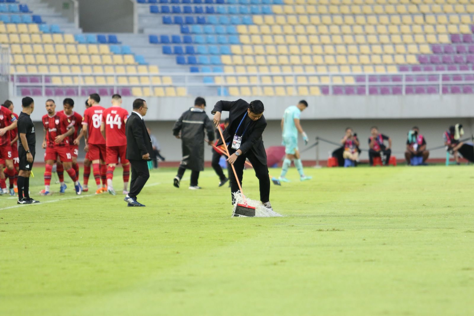 Di sisi lain, sorotan juga muncul terkait kondisi lapangan Stadion Manahan. Disebutkan bahwa lapangan tidak mampu menyerap air hujan dengan baik sehingga mengganggu jalannya pertandingan. Pertandingan babak kedua sempat ditunda akibat kondisi lapangan yang tidak memadai untuk melanjutkan pertandingan.