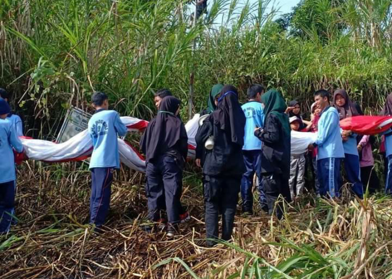 Siswa Dan Guru SMA N 2 Kibarkan Bendera Merah Putih Raksasa Di Ketinggian Lereng Bukit Tui