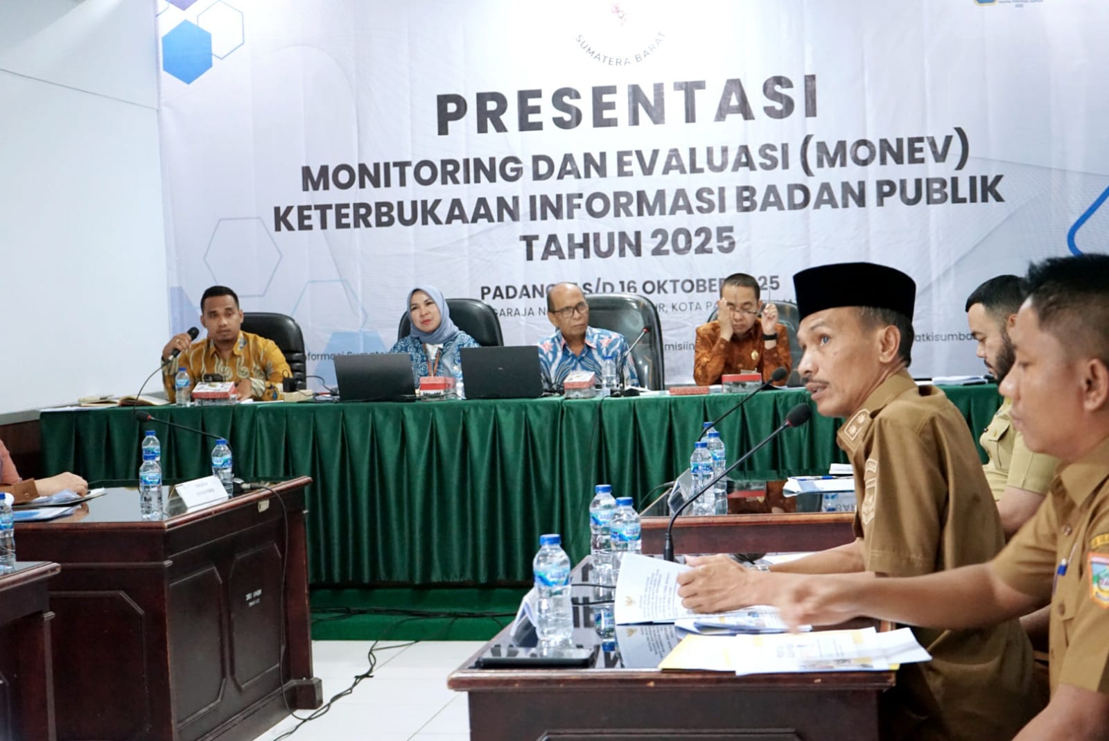 Solok Selatan (Minangsatu) - Komisi Informasi Provinsi Sumatera Barat (KI Sumbar) kembali menggelar tahapan Monitoring dan Evaluasi (Monev) Keterbukaan Informasi Publik tahun 2025. Kegiatan ini telah memasuki tahap presentasi, di mana sebanyak 128 badan publik dari berbagai kategori melakukan pemaparan di Kantor Komisi Informasi Sumbar sejak Selasa (7/10) hingga 16 Oktober 2025 mendatang.