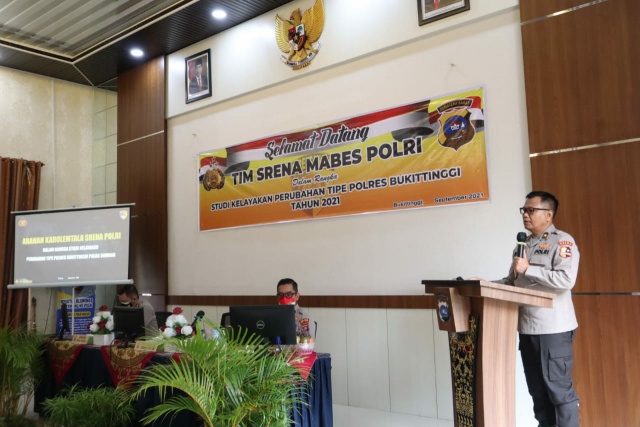 Dalam studi kelayakan ini, Kapolres Bukittinggi Akbp Dody Prawiranegara, S.H., S.I.K., M.H., mengucapkan selamat datang di Polres Bukittinggi kepada semua tim, kemudian Kapolres melakukan paparan perubahan tipe Polres Bukittinggi di hadapan tim.