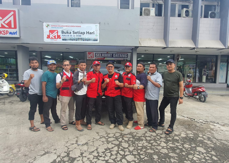 KOMISARIS UTAMA PT SEMEN PADANG SERAHKAN BANTUAN BANJIR BANDANG PALEMBAYAN DI POSKO UTAMA AGAM