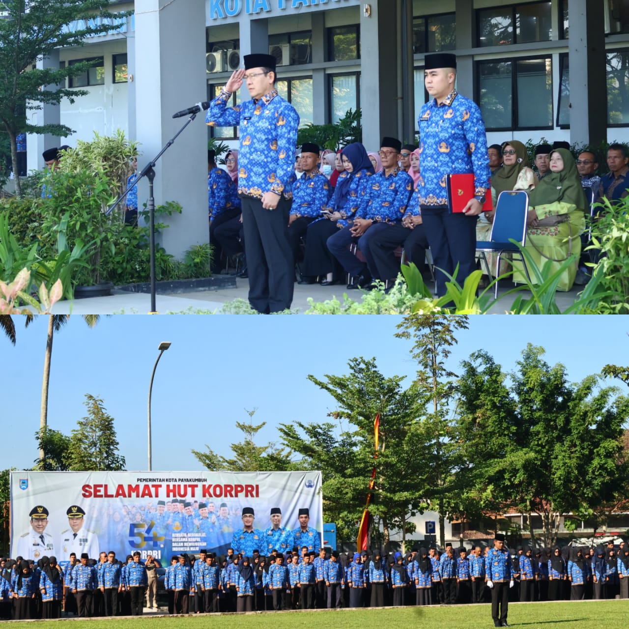 Payakumbuh (Minangsatu) - Pemerintah Kota Payakumbuh menggelar Upacara Peringatan Hari Ulang Tahun (HUT) Korps Pegawai Republik Indonesia (KORPRI) ke-54 di halaman Balai Kota Payakumbuh, Senin (01/12/2025).