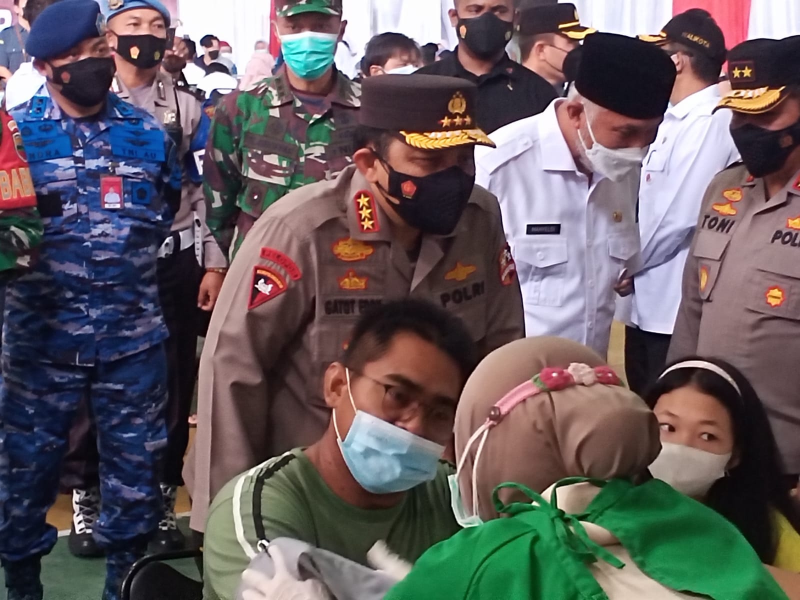 Hampir ribuan masyarakat yang hadir untuk divaksin. Masyarakat rela antri satu persatu masuk untuk didata, cek kesehatannya dan baru divaksin. Selain itu, Gatot meminta masyarakat agar membiasakan diri untuk menggunakan masker saat beraktivitas guna mencegah penyebaran virus corona atau Covid-19.