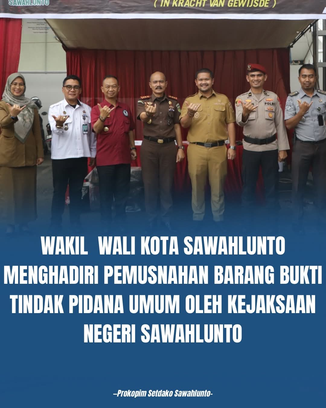 Sawahlunto (Minangsatu) — Wakil Wali Kota Sawahlunto Jeffry Hibatullah menghadiri pemusnahan barang bukti tindak pidana umum oleh Kejaksaan Negeri Sawahlunto sebagai bentuk dukungan pemerintah daerah terhadap penegakan hukum yang akuntabel dan transparan,Selasa (9/12/ 2025).