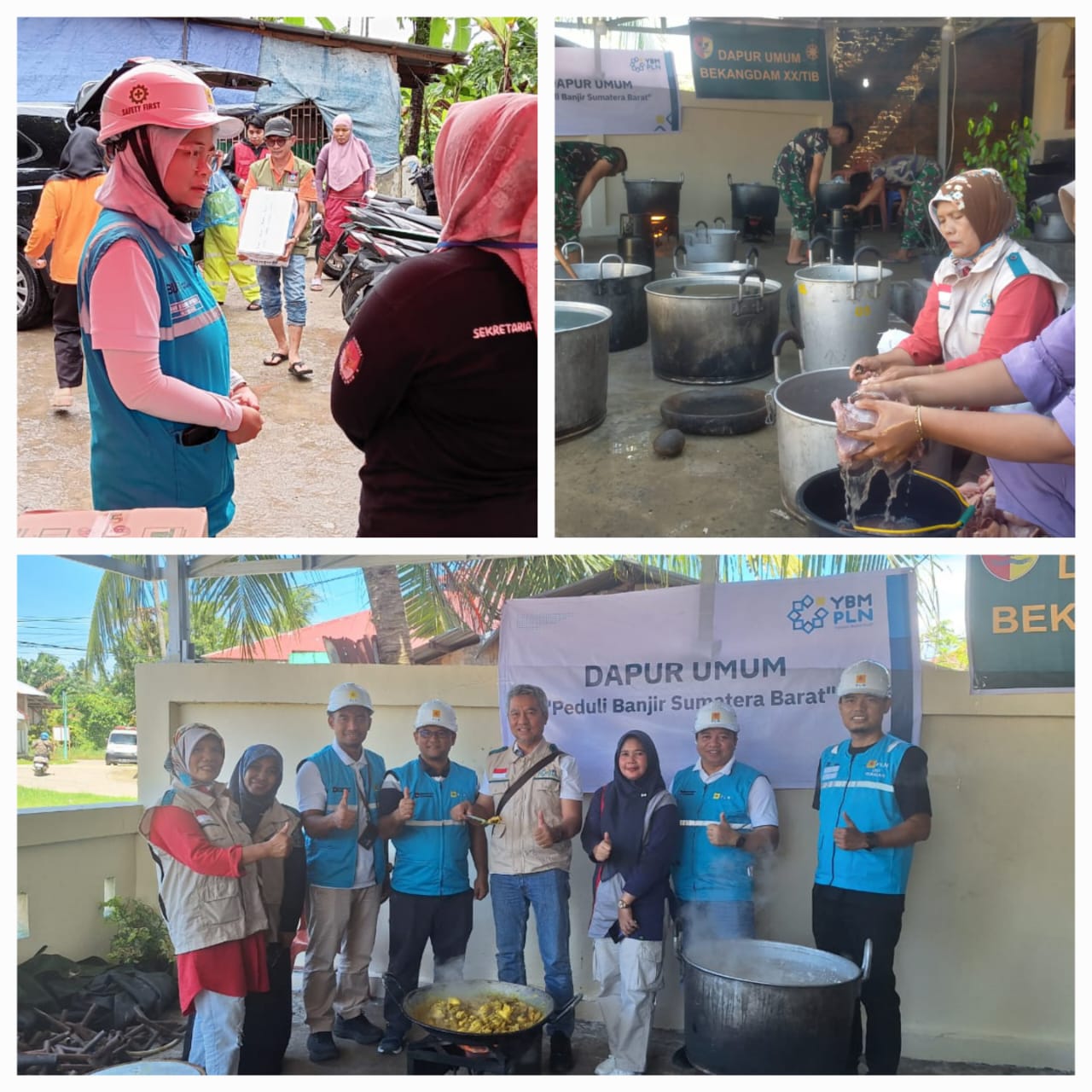 Dapur umum YBM PLN UID Sumatera Barat saat ini beroperasi di Gurun Laweh, Kecamatan Nanggalo, bekerja sama dengan Yonbekang Kodam XX, menyediakan makanan siap santap untuk warga yang masih bertahan di lokasi aman maupun pos penampungan.